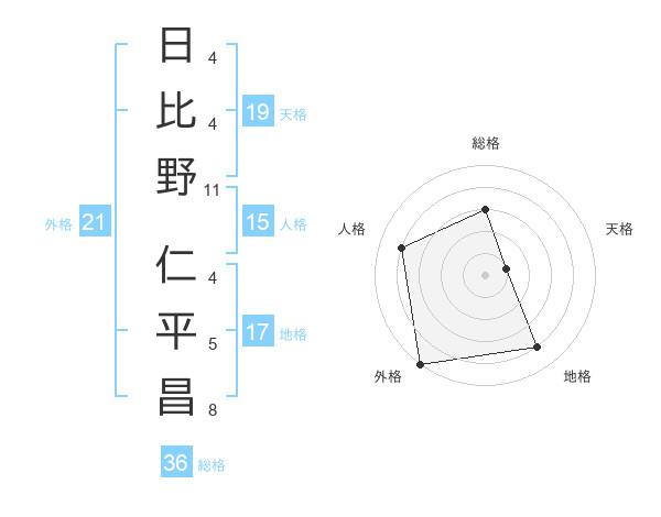 日比野 仁平昌さんを姓名の画数から五運を鑑定