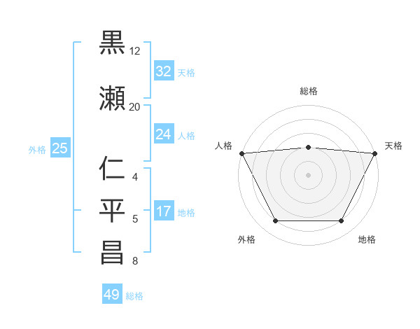 黒瀬 仁平昌さんの外格は25画の4点!