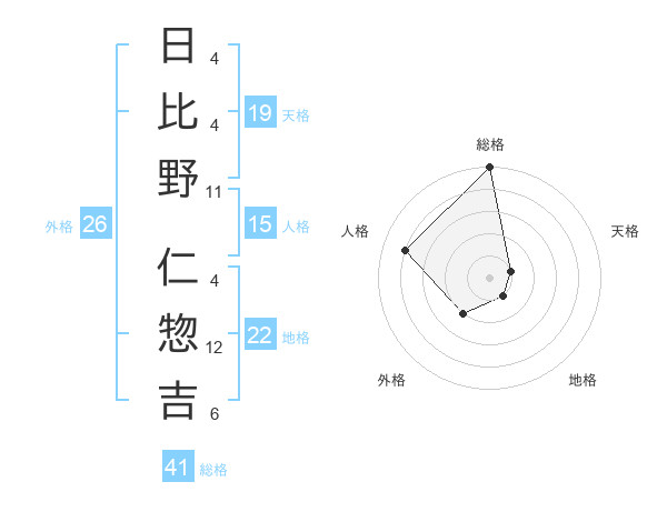 日比野 仁惣吉さんを姓名の画数から五運を鑑定