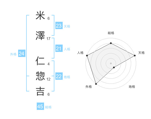 米澤 仁惣吉さんを姓名の画数から五運を鑑定