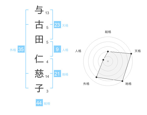 与古田 仁慈子さんを姓名の画数から五運を鑑定