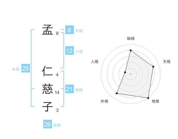 孟 仁慈子さんを姓名の画数から五運を鑑定