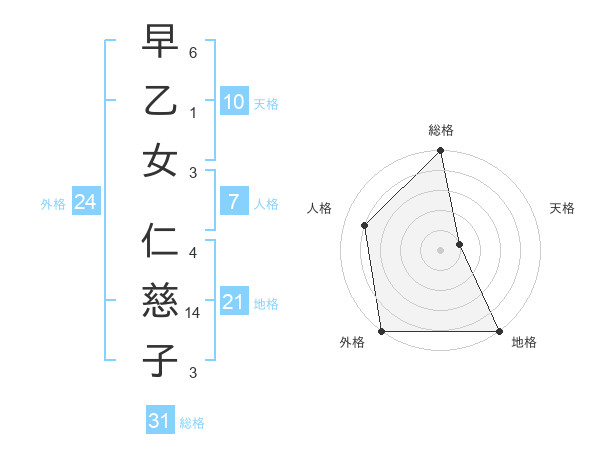 早乙女 仁慈子さんを姓名の画数から五運を鑑定