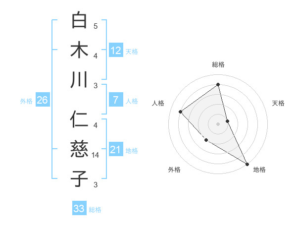 白木川 仁慈子さんを姓名の画数から五運を鑑定