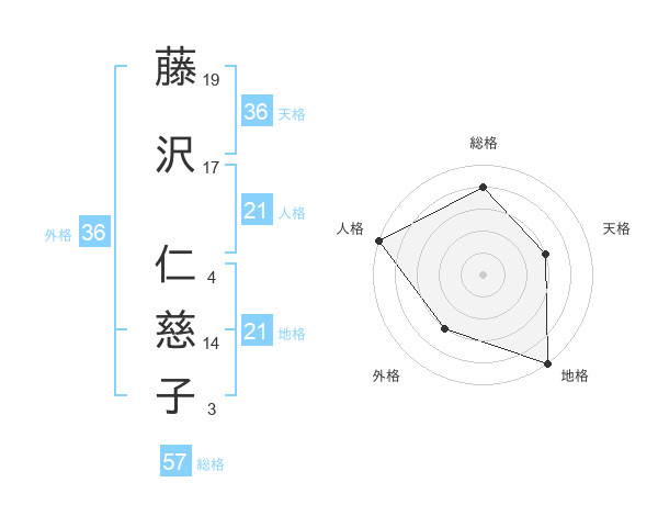 藤沢 仁慈子さんを姓名の画数から五運を鑑定