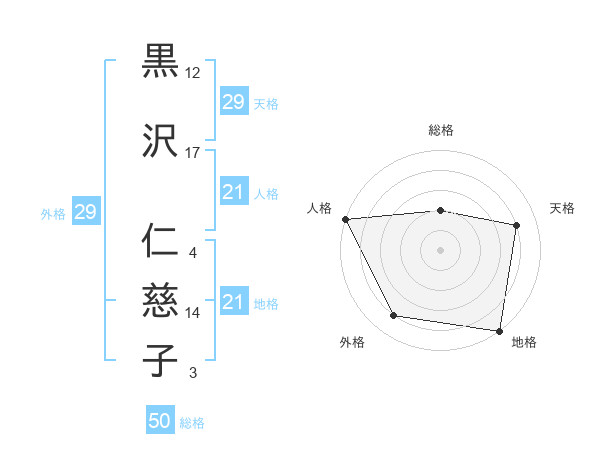 黒沢 仁慈子さんを姓名の画数から五運を鑑定