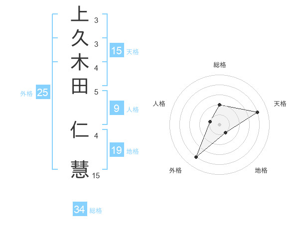 上久木田 仁慧さんの天格は15画の4点!