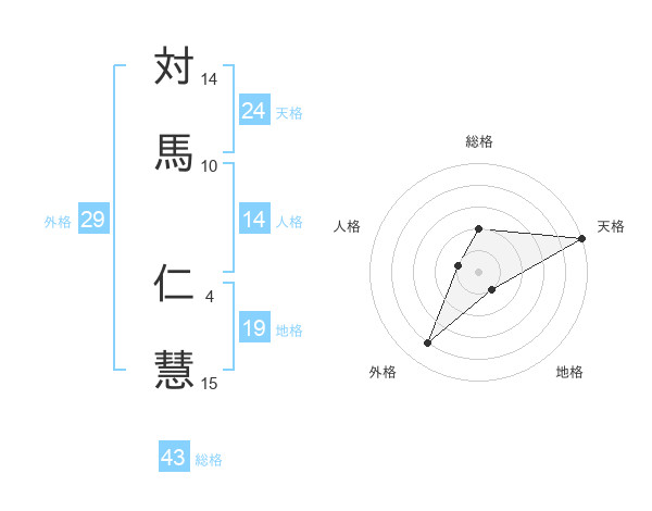 対馬 仁慧さんを姓名の画数から五運を鑑定
