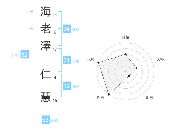 海老澤 仁慧さんの総格は53画の3点!