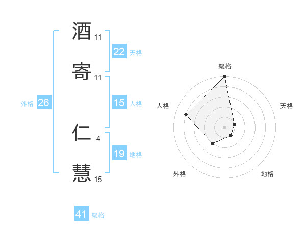 酒寄 仁慧さんを姓名の画数から五運を鑑定