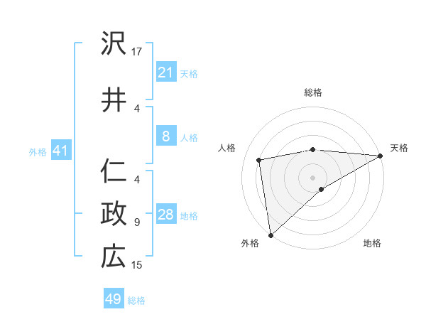 沢井 仁政広さんを姓名の画数から五運を鑑定