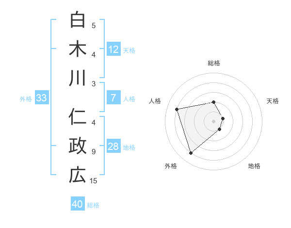 白木川 仁政広さんを姓名の画数から五運を鑑定