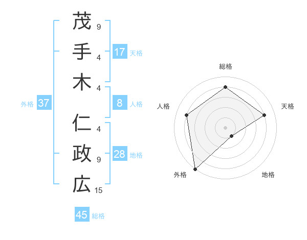 茂手木 仁政広さんを姓名の画数から五運を鑑定