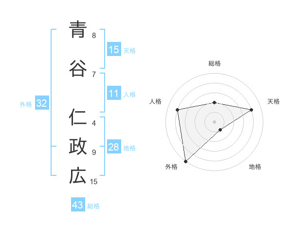 青谷 仁政広さんを姓名の画数から五運を鑑定