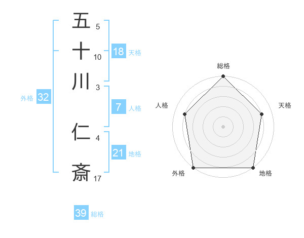 五十川 仁斎さんを姓名の画数から五運を鑑定