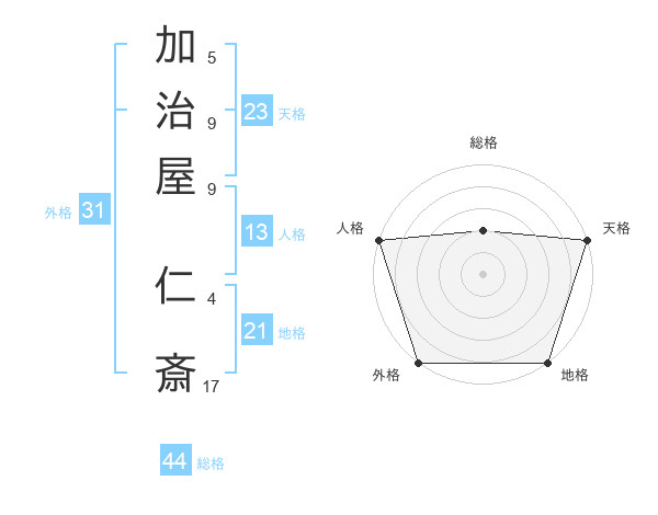 加治屋 仁斎さんを姓名の画数から五運を鑑定