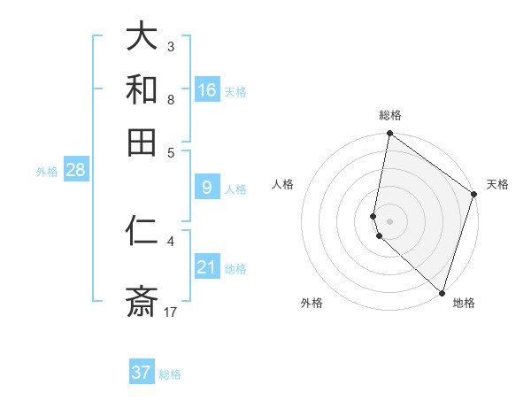 大和田 仁斎さんの総格は37画の5点!