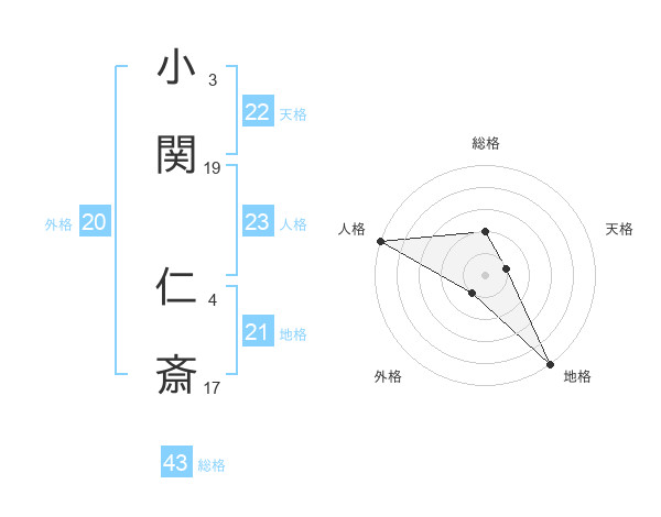 小関 仁斎さんを姓名の画数から五運を鑑定