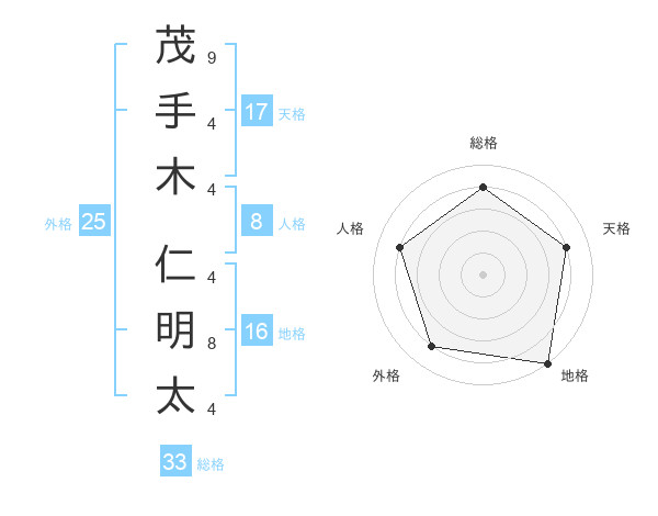 茂手木 仁明太さんを姓名の画数から五運を鑑定