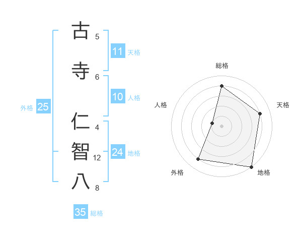 古寺 仁智八さんを姓名の画数から五運を鑑定