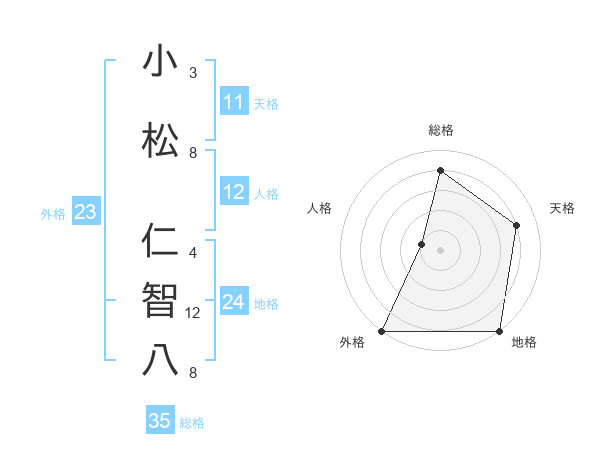 小松 仁智八さんの総格は35画の4点!