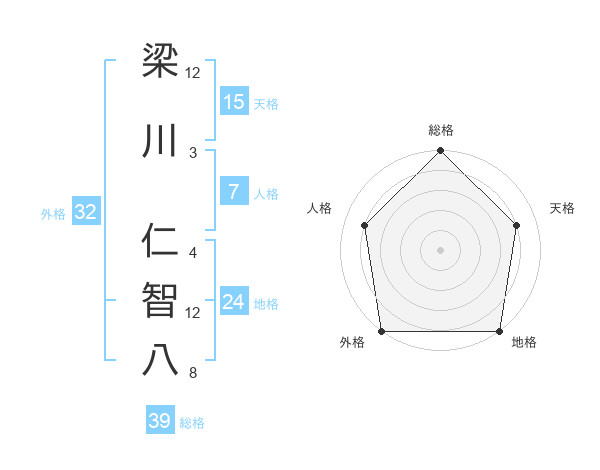 梁川 仁智八さんを姓名の画数から五運を鑑定