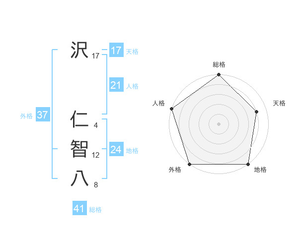 沢 仁智八さんを姓名の画数から五運を鑑定