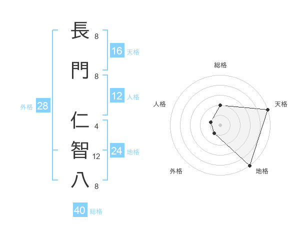 長門 仁智八さんを姓名の画数から五運を鑑定