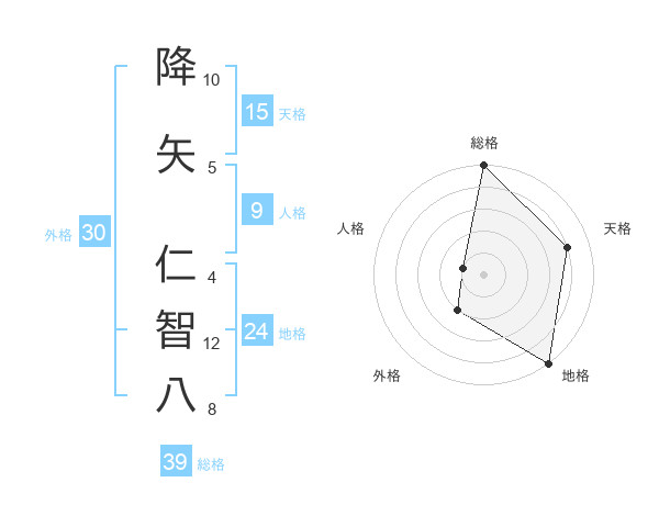 降矢 仁智八さんの天格は15画の4点!