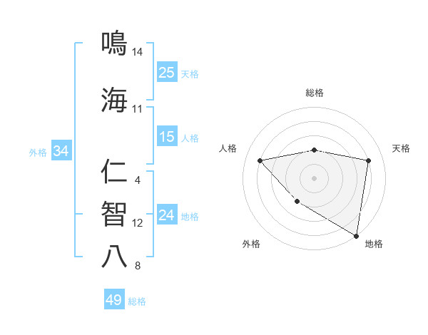 鳴海 仁智八さんの総格は49画の2点!