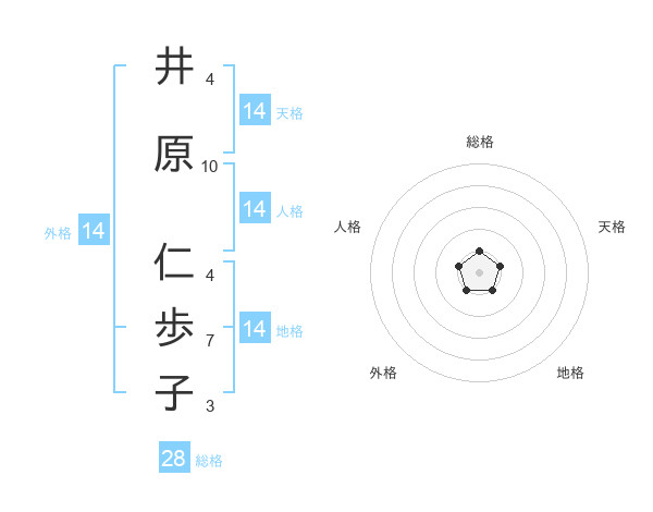 井原 仁歩子さんを姓名の画数から五運を鑑定