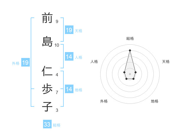 前島 仁歩子さんを姓名の画数から五運を鑑定