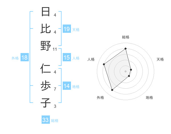 日比野 仁歩子さんの総格は33画の4点!