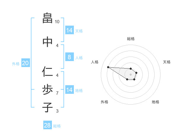 畠中 仁歩子さんを姓名の画数から五運を鑑定