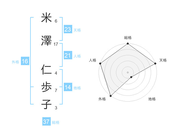 米澤 仁歩子さんを姓名の画数から五運を鑑定