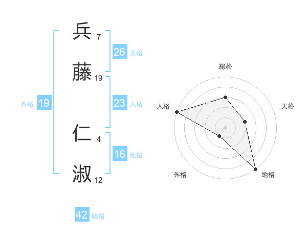 兵藤 仁淑さんを姓名の画数から五運を鑑定