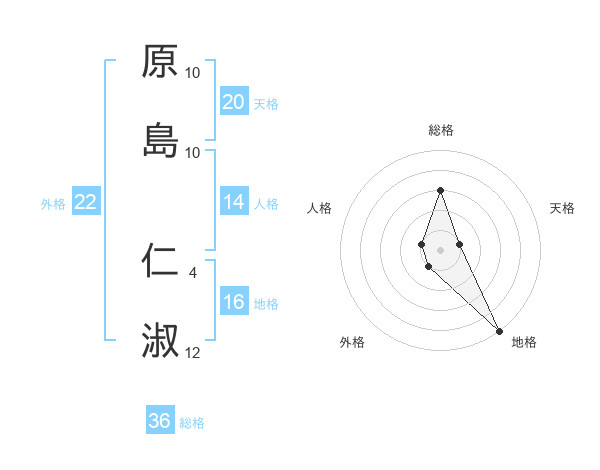 原島 仁淑さんを姓名の画数から五運を鑑定