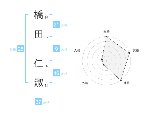 橋田 仁淑さんを姓名の画数から五運を鑑定
