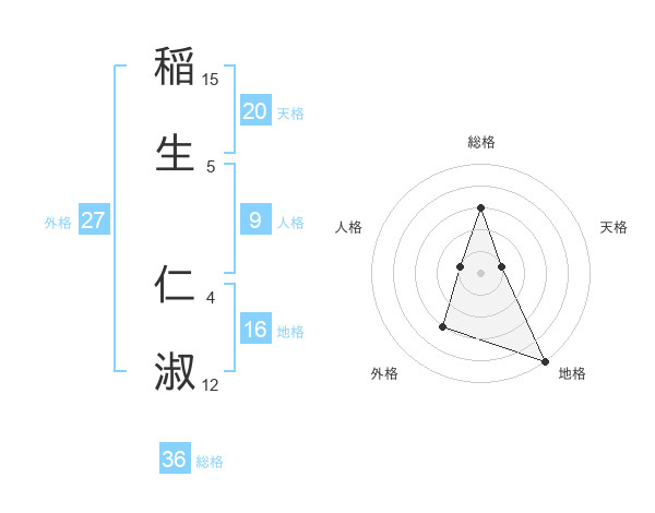 稲生 仁淑さんを姓名の画数から五運を鑑定
