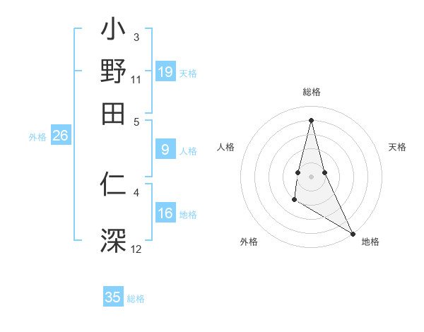 小野田 仁深さんの総格は35画の4点!