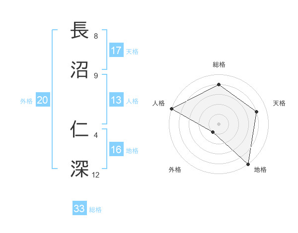 長沼 仁深さんを姓名の画数から五運を鑑定