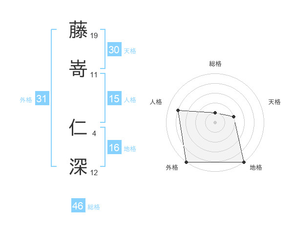 藤嵜 仁深さんの外格は31画の5点!