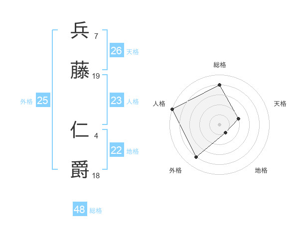 兵藤 仁爵さんを姓名の画数から五運を鑑定