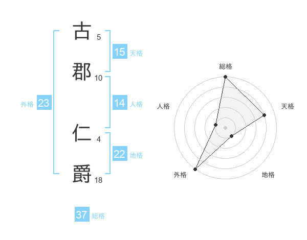 古郡 仁爵さんを姓名の画数から五運を鑑定