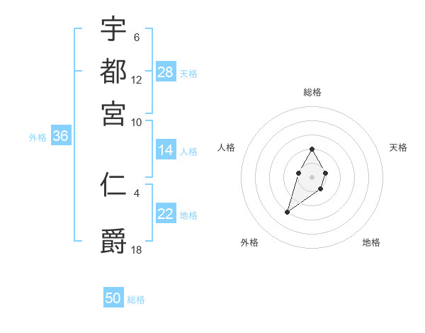 宇都宮 仁爵さんの総格は50画の2点!