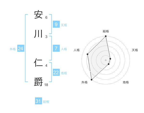 安川 仁爵さんの総格は31画の5点!