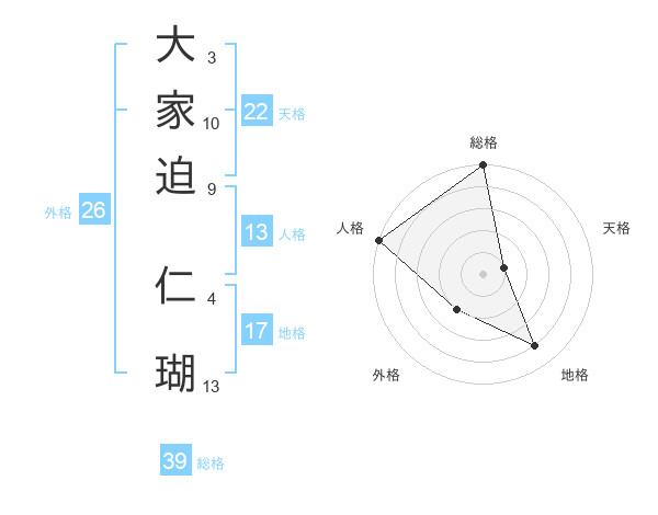 大家迫 仁瑚さんを姓名の画数から五運を鑑定