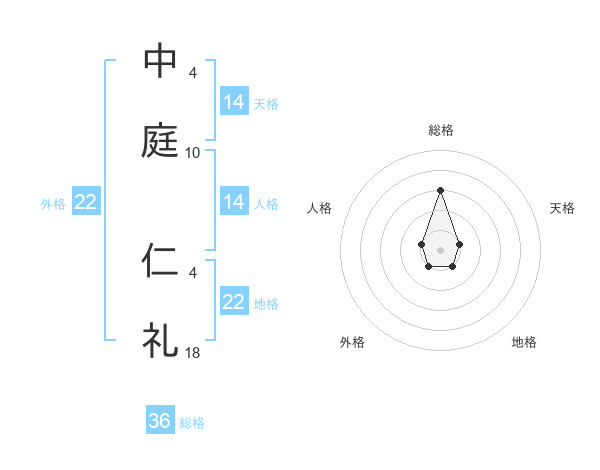 中庭 仁礼さんの天格は14画の1点!