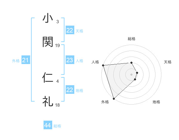小関 仁礼さんを姓名の画数から五運を鑑定