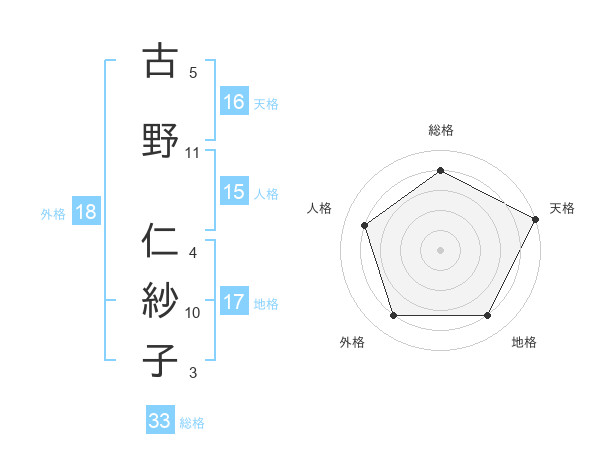 古野 仁紗子さんを姓名の画数から五運を鑑定